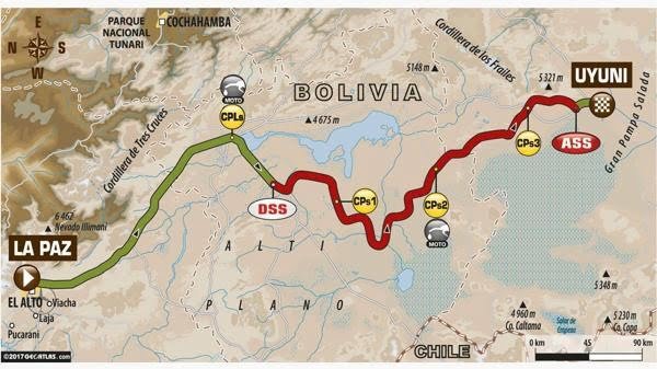 La segunda parte de la jornada maratón se completará el martes en la octava etapa entre Uyuni y Salta, en Argentina, sobre un trazado de 892 km, con 492 de especial.