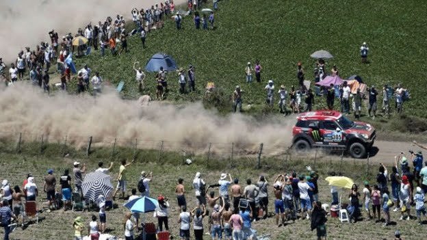 Minutos antes de que llegara el primer participante (el español Barreda Bort en su moto Honda) comenzaron a arribar al sector los vehículos de asistencia que fueron ocupando las parcelas delimitadas para cada uno de ellos. Es impactante ver cómo trabajan las diferentes estructuras, con verdaderos talleres móviles como los equipos oficiales de Yamaha, KTM, Honda, Peugeot, Mini o Toyota, hasta los equipos más “caseros” que sin tantas comodidades o despliegues de mecánicos, viven la carrera a su manera.
