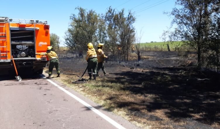 Bomberos de Ing. Luiggi y Caleufú controlaron un incendio de banquina en la Ruta 9