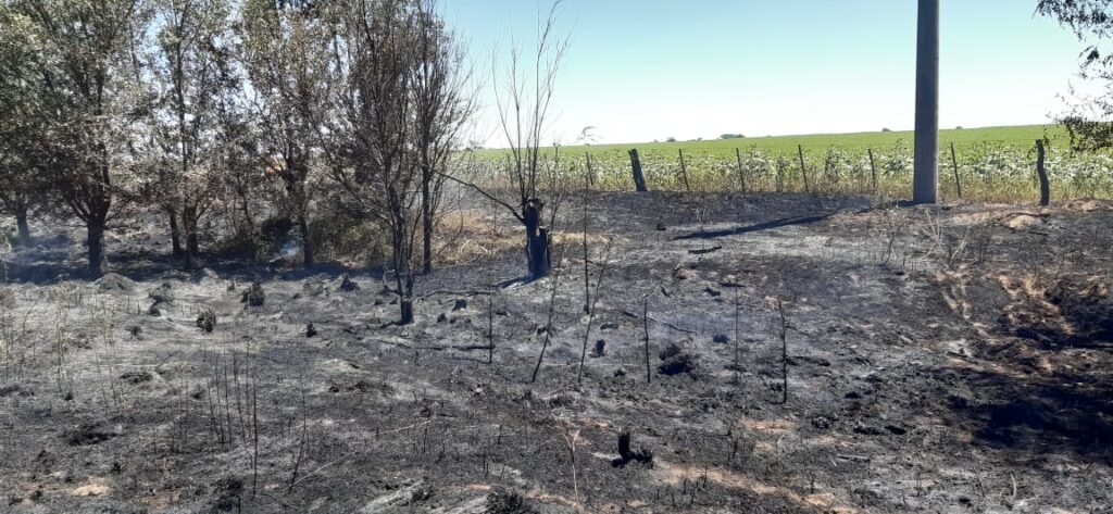 La jefa del Cuerpo Activo de Luiggi Hilda Luna confirmó: «hoy a las 9:15 fuimos convocados por un incendio de banquina sobre la ruta provincial número 9 a la altura del kilómetro 45».