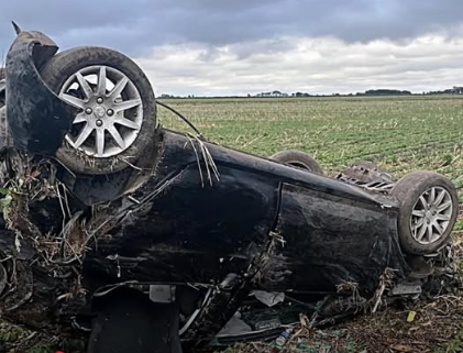 Según lo informado, el automóvil Peugeot 308 negro mordió la banquina, se cruzó de carril, impactó contra una alcantarilla, se despistó de la ruta, atravesó un alambrado y terminó volcado con las cuatro ruedas hacia arriba dentro de un predio rural.