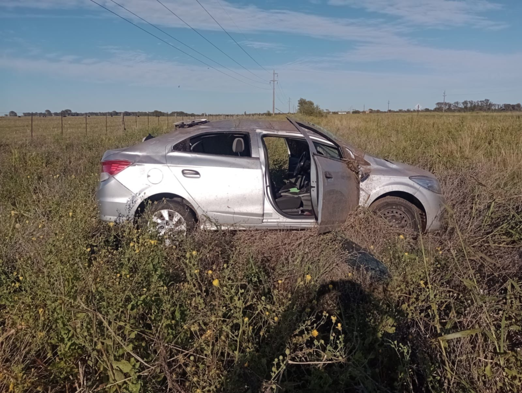 El vehículo que despistó y terminó volcando es un Chevrolet Prisma 1.4 LT de color gris. Por razones que se tratan de establecer, el conductor del rodado perdió el control, cruzó la cinta asfáltica y terminó volcando sobre la mano sur.
