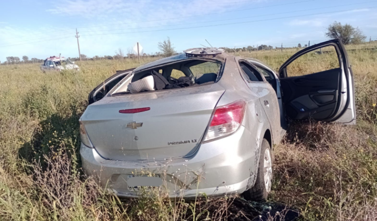 El vehículo que despistó y terminó volcando es un Chevrolet Prisma 1.4 LT de color gris. Por razones que se tratan de establecer, el conductor del rodado perdió el control, cruzó la cinta asfáltica y terminó volcando sobre la mano sur.