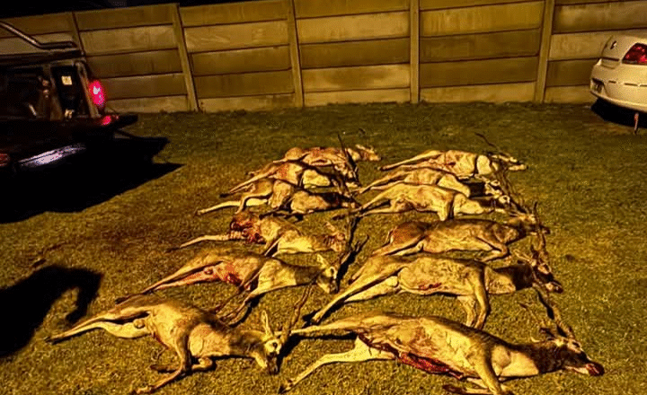 Durante el operativo, se detuvo a una Pick Up, marca VW Amarok, en la que se transportaban tres personas, incluyendo un menor de edad. En la caja de carga del vehículo se encontraron 12 antílopes muertos.