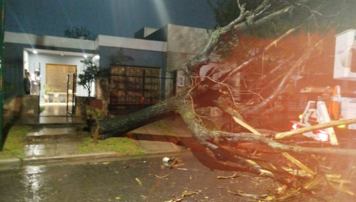 Uno de los incidentes más relevantes ocurrió sobre la Ruta Provincial N° 1, frente al Parque Apícola, donde un árbol de grandes dimensiones se desplomó sobre la calzada, interrumpiendo por completo la circulación.