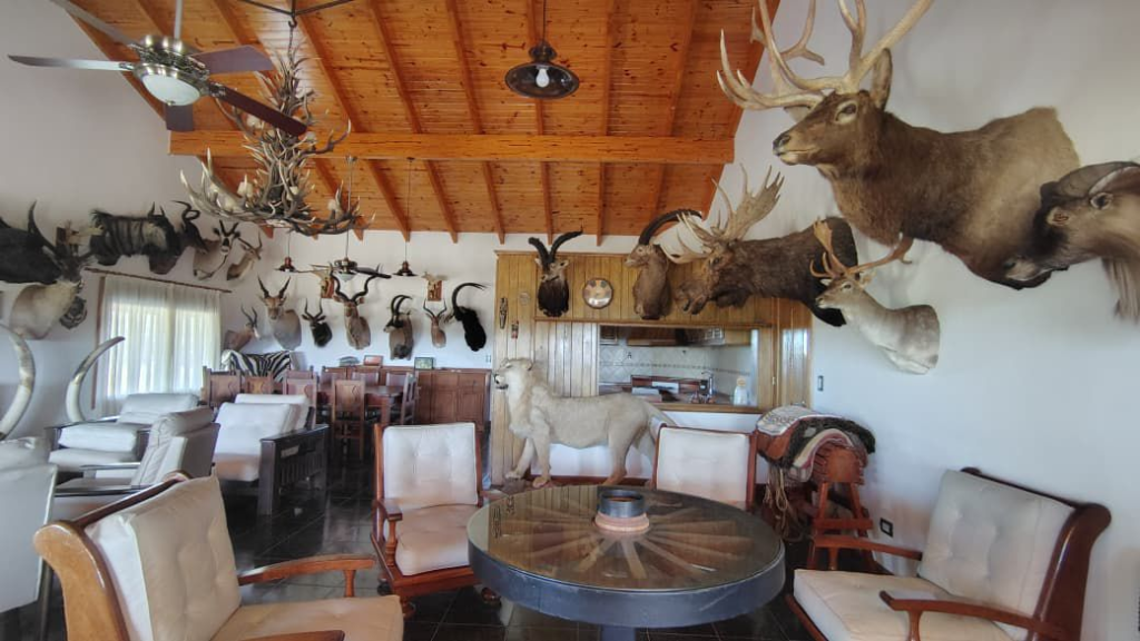 En cuanto a elementos vinculados a la caza, se procedió al secuestro de restos cárnicos y una importante cantidad de piezas: un total de 40 cabezas de ciervo, 1.127 piezas de volteo de astas, un cuero de ciervo axis, cinco pares de colmillos de jabalí, dos cabezas de antílope y cuatro vainas de la misma especie. Asimismo, se constató la presencia de 37 especies exóticas disecadas (taxidermia), las cuales quedaron depositadas en el lugar.