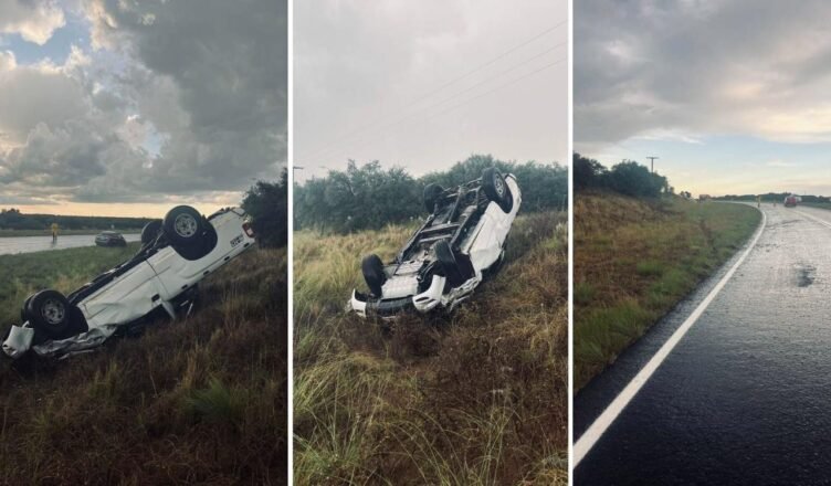 El siniestro ocurrió en momentos en que se registraban lluvias en la zona. Por causas que aún se tratan de establecer, el conductor perdió el control de una camioneta Chevrolet S10 al tomar una curva ubicada frente al predio rural El Mangrullo. Como consecuencia, el vehículo volcó y dio varios tumbos.