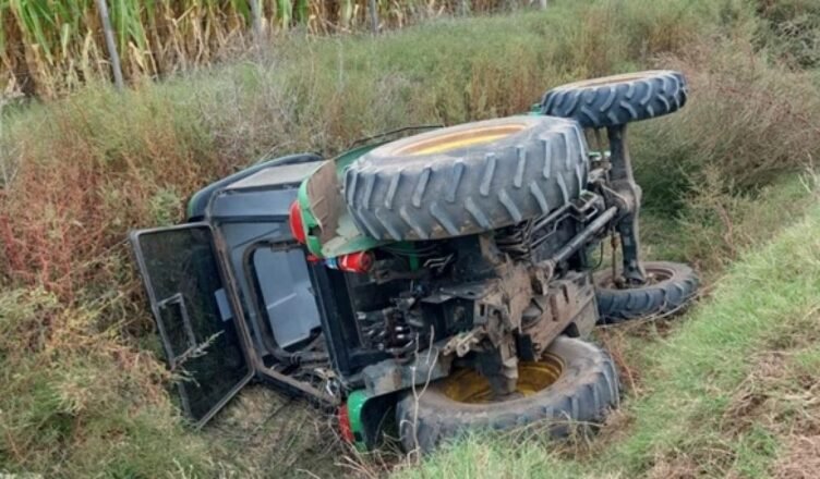 En el lugar, la policía halló un tractor marca John Deere (modelo 5425), de color verde y amarillo, volcado sobre su lateral izquierdo dentro de una zanja ubicada en la vera este del camino rural.