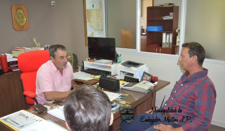 El intendente de Embajador Martini Ariel Bogino recibió en su despacho al Subsecretario de Desarrollo Local Ariel Aquino y al Director de MicroPymes, Marcos Pico. El objetivo del encuentro fue generar un primer acercamiento desde este nuevo área del Ministerio de la Producción y hacer un relevamiento de los créditos otorgados en la localidad.