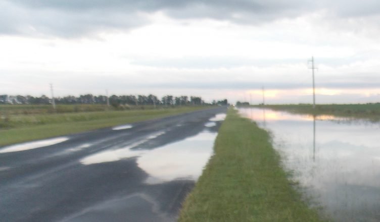 Este tramo de la ruta provincial 4, en el kilómetro 106 – Bajo de Busso, presenta abundante agua sobre la calzada y deterioro notable del pavimento.