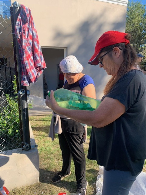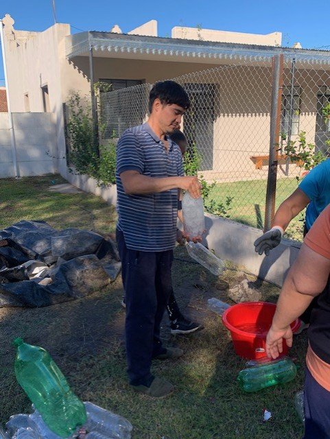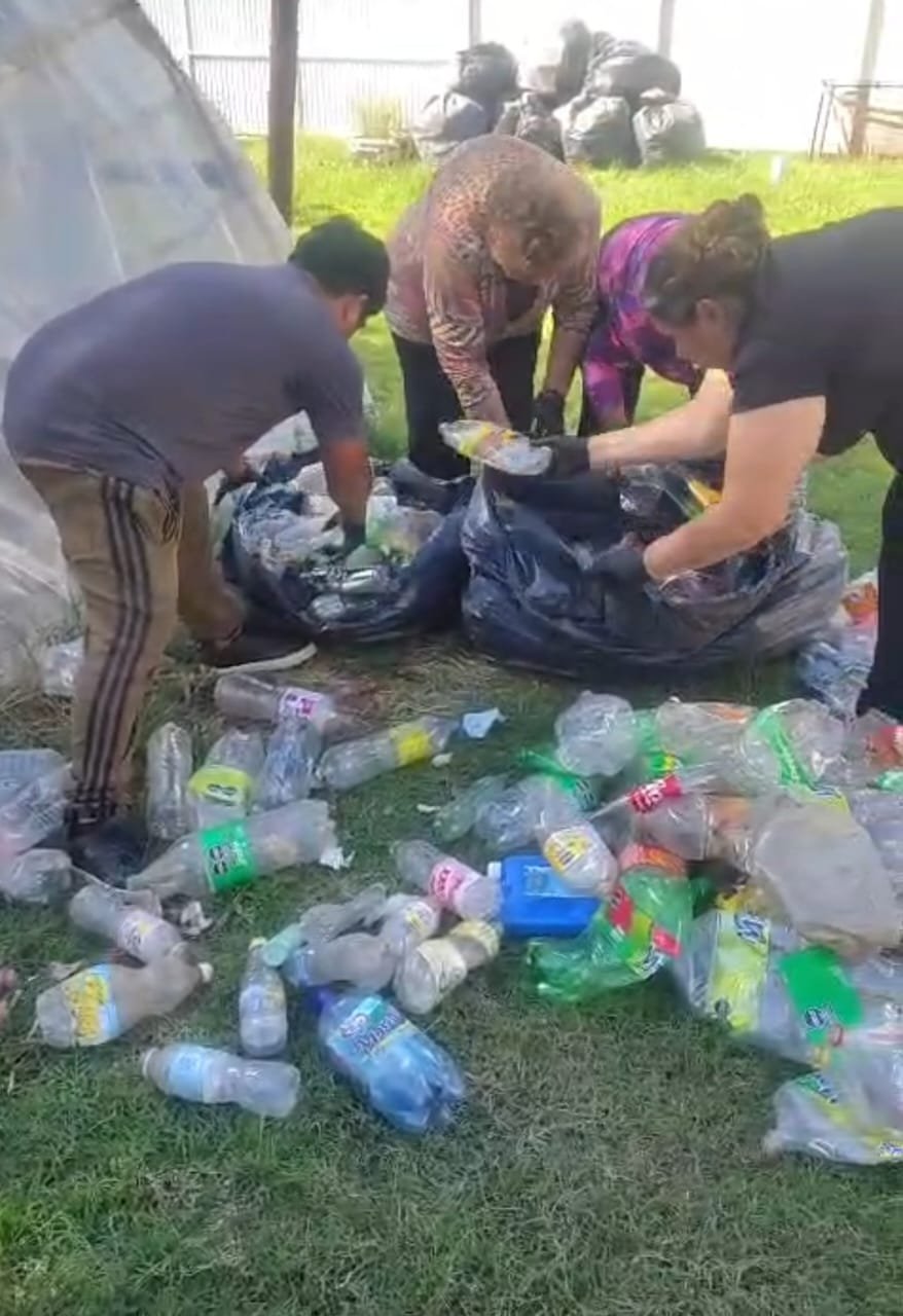 Grangetto explicó que «en este momento estamos recopilando y lavando algunas botellas de plástico que nos fueron acercando y les pedimos a los vecinos si pueden separar en sus casas botellas de plástico transparente, de 3 litros, 2 litros y un cuarto, o un litro, y en lo posible limpias, que nos servirán para construir nuestro invernadero».