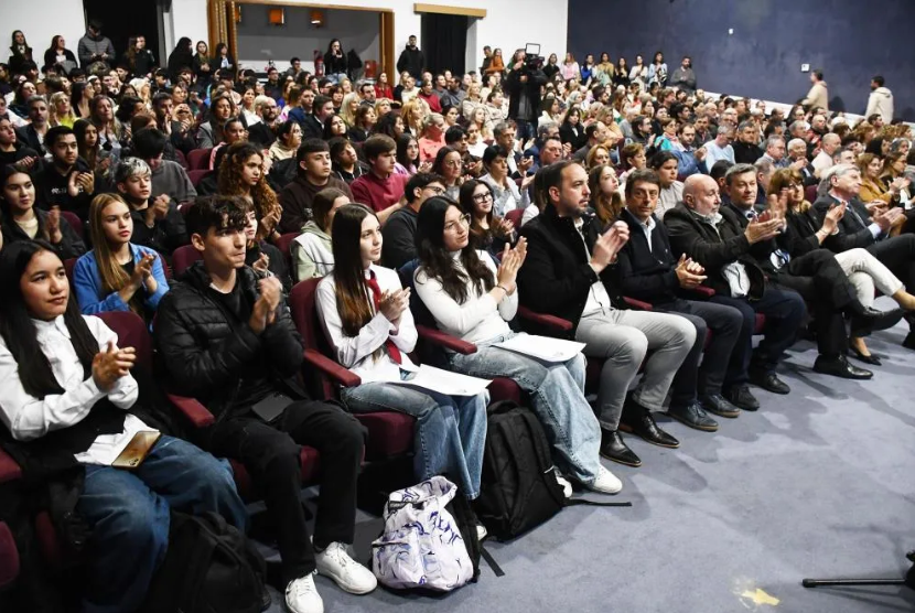 El gobernador Sergio Ziliotto junto a funcionarios de la provincia, municipios, de la UNLPam, y estudiantes secundarios, presentó en el Medasur de Santa Rosa el programa de becas «Impulsar futuro» que serán de 300 mil pesos mensuales, y se implementarán desde febrero del año próximo.