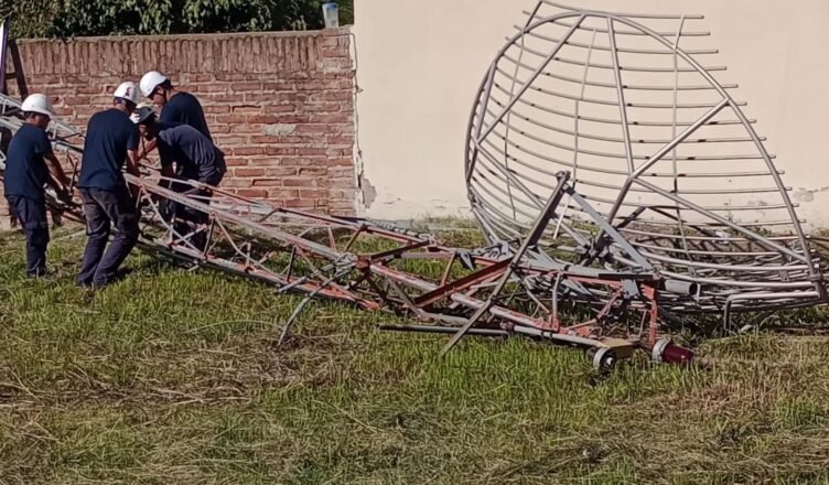 La caída ocurrió en la mañana de este miércoles. Habría sido producto de que se desprendió una de las riendas que hacen de sostén de la estructura que sería propiedad de la empresa Telefónica.