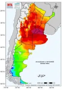Para las próximas dos semanas se prevén lluvias de moderadas a abundantes en el centro-este del país. En aquellas zonas donde los suelos ya se encuentran saturados, estos nuevos acumulados podrían dificultar las labores de siembra de los cultivos estivales.