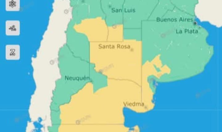 El área del sur de Mendoza y de San Luis será afectada por tormentas aisladas, pudiendo ser algunas fuertes. Las mismas podrán estar acompañadas por caída de granizo, actividad eléctrica intensa, precipitación abundante en cortos períodos y ráfagas que pueden alcanzar los 70 km/h. Se prevén valores de precipitación acumulada entre 30 y 50 mm, pudiendo ser superados de manera local.