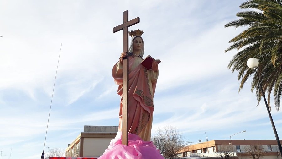 La imagen de Nuestra Señora Santa Elena, fue transportada por un móvil de Bomberos por las calles de la localidad, minutos después de la hora 17 en honor a Santa Elena.