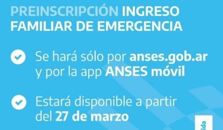 Lo vas a poder tramitar ingresando en anses.gob.ar desde abril. A partir del 27 de marzo vas a poder llenar la preinscripción para solicitar el Ingreso Familiar de Emergencia (IFE). Aquellas personas que cobren la Asignación Universal o la Asignación por Embarazo no tienen que realizar ningún trámite, y el cobro será automático.