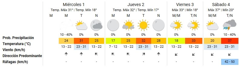 Para este miércoles 1 de enero, el SMN anuncia una máxima que superaría los 30 grados y viento del sector sur de hasta 30 km /h.