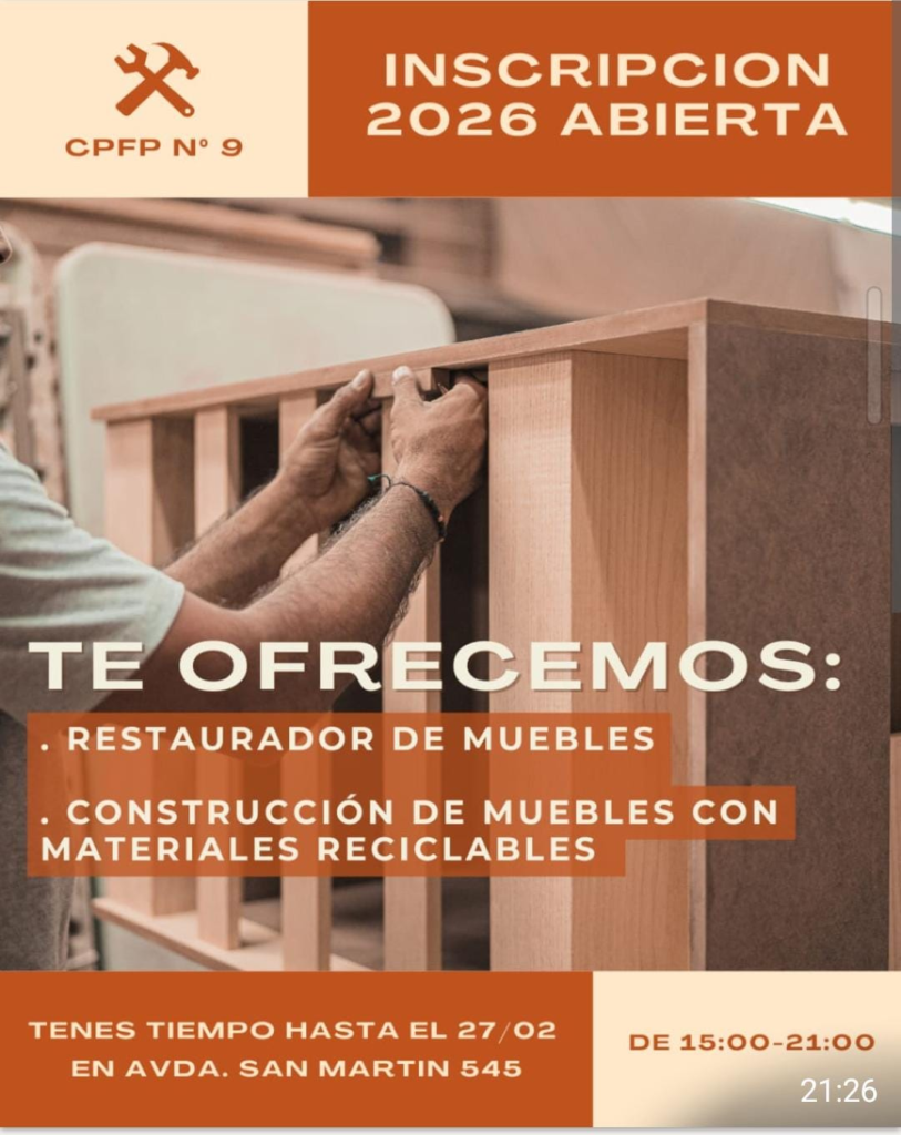 El Centro de Formación Profesional N 9 de Ingeniero Luiggi anunció la apertura de inscripciones para su oferta educativa correspondiente al primer semestre del año, con propuestas orientadas a la capacitación laboral y al desarrollo de oficios con alta demanda en la comunidad.