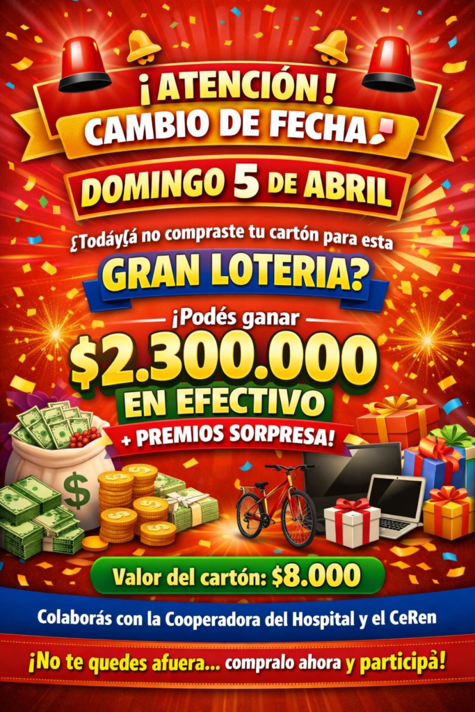 La reprogramación no solo busca asegurar el éxito del evento, sino también brindar una última oportunidad a aquellos vecinos que aún no han adquirido su número. Todo lo recaudado será destinado íntegramente a las necesidades del Hospital local y del CeRen.