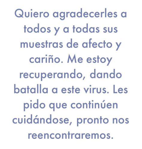 La propia jefa comunal publicó un mensaje en las redes sociales en la tarde de este jueves. «Me estoy recuperando, dando batalla a este virus, sigan cuidándose,» dijo, y agradeció las muestras de cariño y apoyo.