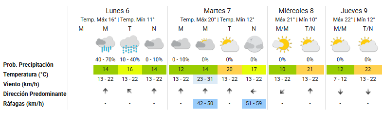 • Condición actual: Lloviznas intermitentes en toda la franja norte.