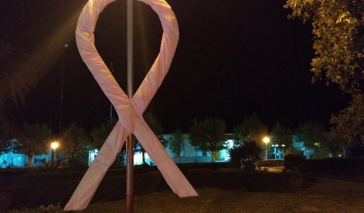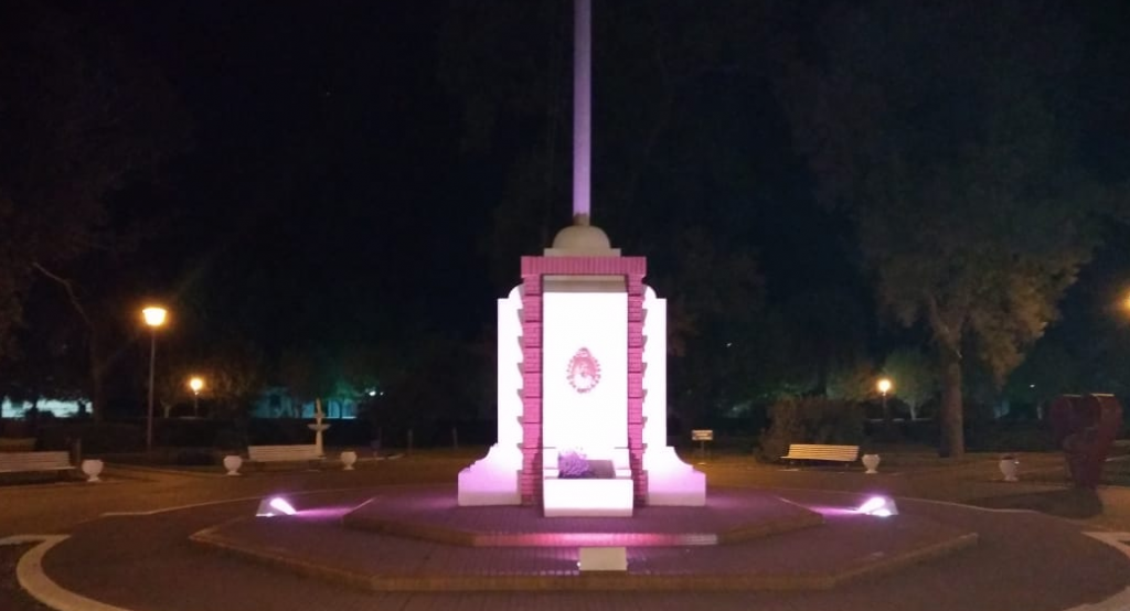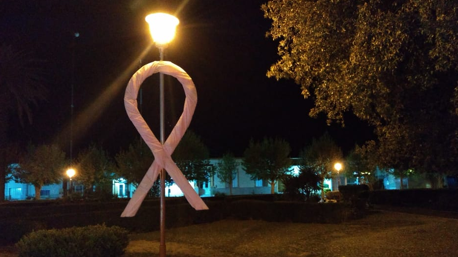 A lo largo del mes de octubre, el mástil de la plaza central se encuentra iluminado de color rosa como una manera de concientizar sobre esta enfermedad.