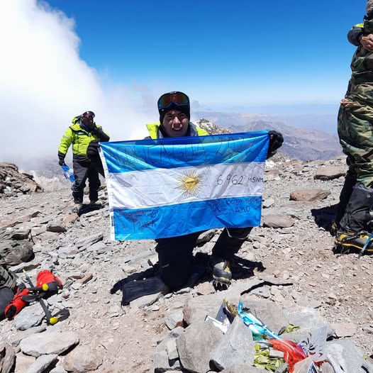 A 6.962 metros sobre el nivel del mar, donde el aire escasea y la voluntad lo es todo, Franco hizo flamear la bandera Tripera, esos colores que defendió desde niño en el fútbol infantil y en las divisiones inferiores del Club Matienzo. Una imagen potente, cargada de identidad, sacrificio y pertenencia.