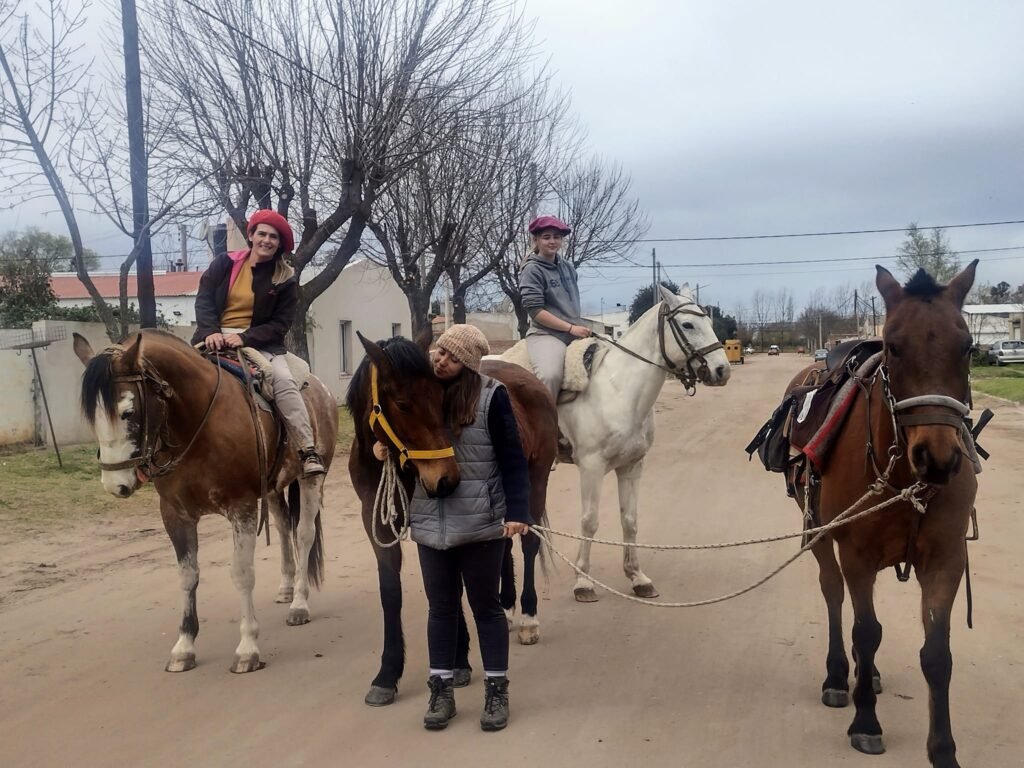 Claire apasionada por los caballos, comenzó a organizar su viaje por Argentina, en Bariloche compró el primer caballo, el segundo en Trevelín (Chubut) y ahora sumó una yegua que es pampeana.