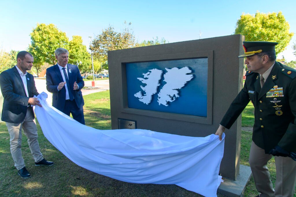 En el marco de la conmemoración, se descubrió una placa alusiva a Malvinas en la plaza central de la localidad, como símbolo permanente de homenaje a los caídos y veteranos.