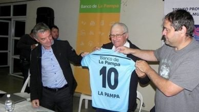 El director de Deportes de La Pampa, Ceferino Almudevar, y el director del Banco de La Pampa (BLP), Carlos Gaccio, presidieron el acto de lanzamiento de la Liga Provincial de Fútbol Municipal “60 aniversario del Banco de La Pampa”, que se realizó anoche en Conhelo.