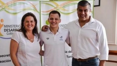 En la Subsecretaría de Deportes, la ministra de Desarrollo Social, Fernanda Alonso y el subsecretario de Deportes, Recreación y Turismo Social, Fernando Sánchez, recibieron a Joaquín Moreno, el nadador pampeano que este año formó parte del selectivo argentino.
