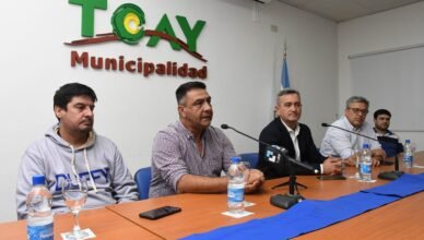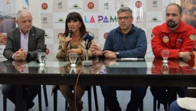 La secretaria de Turismo, Adriana Romero, junto al presidente del Fideicomiso Autódromo Provincia de La Pampa, Sergio Pereda, el intendente de Toay, Rodolfo