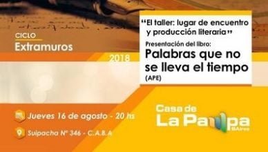 En una nueva edición del ciclo Extramuros, la Casa de La Pampa y la Asociación Pampeana de Escritores (APE) organizan la charla “El Taller: lugar de encuentro y producción literaria”, y se presentará el libro “Palabras que no se lleva el tiempo”.