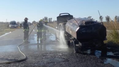 Dos camionetas chocaron este miércoles en cercanías del acceso a Bernardo Larroudé y se incendiaron. Una de ellas transportaba una cisterna con combustible.