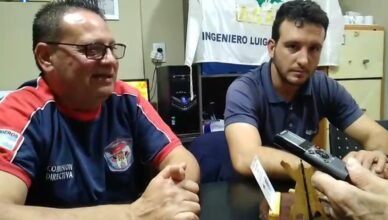 El presidente de la Asociación Gremial Agropecuaria Maximiliano Tarditi y el presidente de la comisión directiva de Bomberos Voluntarios de Ingeniero Luiggi Antonio