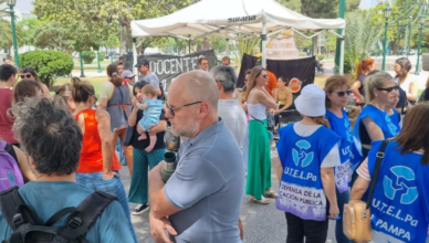 En el marco del paro nacional del miércoles, la docencia unioversitaria se concentró nuevamente frente al edificio de la Universidad Nacional de La