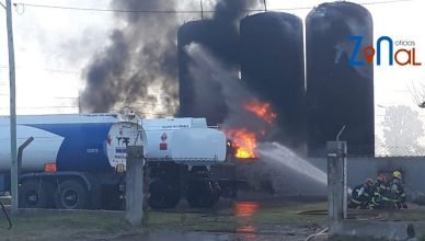 En el depósito de combustible siguen trabajando dotaciones de bomberos de todo el norte provincial. Ahora se sumaron los bomberos de Trenel y personal de Defensa Civil.