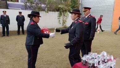 Los bomberos voluntarios de Rancul fueron homenajeados con un mural realizado por Pablo Baras, en representación de la Municipalidad de Rancul; y la