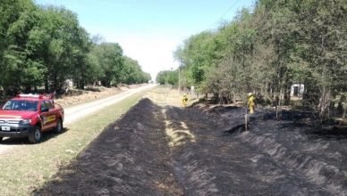 Esta mañana personal de Bomberos Voluntarios de Ingeniero Luiggi trabajó en un incendio de pastizales en la bajada hacia El Tala.