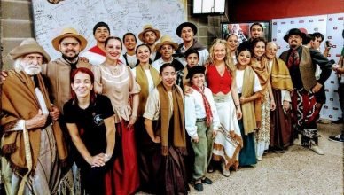 [caption id="attachment_20475" align="alignnone" width=""]Lucrecia Rodrigo junto a los bailarines en su paso por el Festival de Jesús María[/caption]