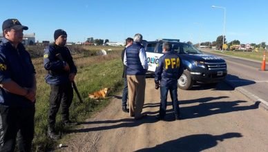 Un gran despliegue policial se observó este jueves en horas de mediodía en la intersección de Ruta nacional 35 y acceso a Embajador