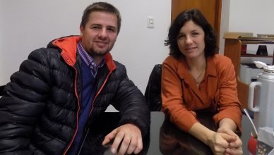 [caption id="attachment_18370" align="alignnone" width=""]Elisa Grangetto y el biólogo Leonardo Aimar [/caption]