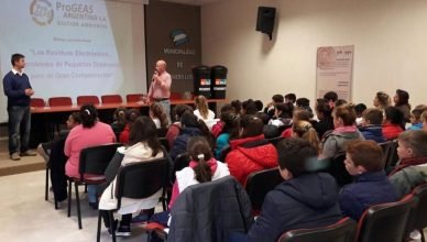 El biólogo Leonardo Aimar de la empresa ProGeas Argentina SA brindó una charla de concientización en la localidad de Ingeniero Luiggi sobre la importancia de reducir la basura electrónica. Jornadas similares se realizan esta tarde en el colegio Santa Teresita de Embajador Martini y el viernes en el Instituto República del Perú de Parera.
