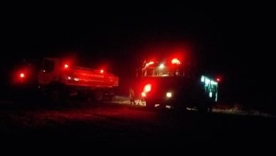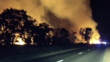 Anoche en plena tormenta con ráfagas que llegaban a los 80 km por hora, bomberos abatieron un incendio sobre la ruta 2 entre Luiggi y Embajador Martini.
