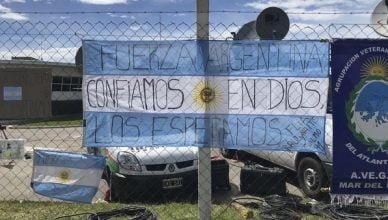 [caption id="attachment_19830" align="alignnone" width=""]Las banderas desplegadas por los familiares de los tripulantes del Submarino ARA San Juan que esperan novedades.[/caption]