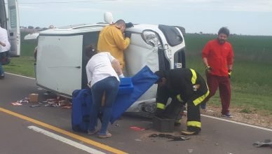El accidente ocurrió pasadas las 13.50 de este martes cuando un utilitario Renault Kangoo, volcó en la ruta provincial 9, tras realizar una brusca maniobra y derrapar unos cuantos metros.